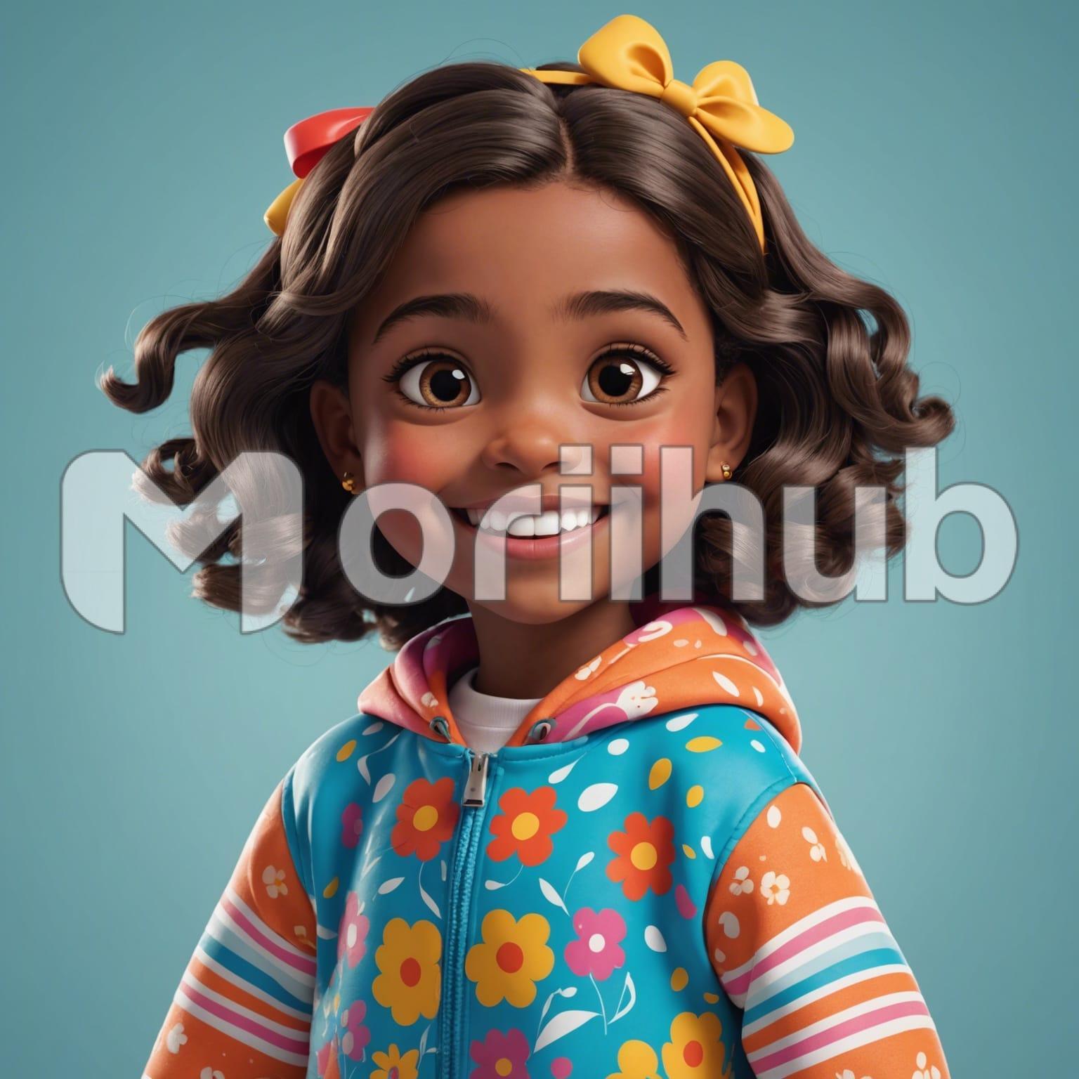 An animated girl beams with a radiant smile, her eyes sparkling with joy. A pretty bow delicately rests atop her hair, adding a charming accent to her appearance. Against a plain background, her presence shines, the simplicity emphasizing her vibrant energy and cheerful demeanor. Her smile is infectious, spreading warmth and happiness to anyone who beholds it. With an aura of innocence and charm, she captivates with her animated expression, embodying the pure delight of youthful exuberance in every aspect of her being.
