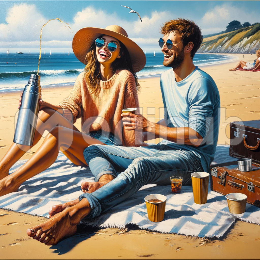 Vibrant essence of friendship is vividly portrayed on a serene beach date. Two friends, their laughter harmonizing with the soothing waves, sit side by side on a beach blanket. The atmosphere exudes joy and relaxation, as they share stories and savor the moment. The sun paints a warm canvas of golden sands and sparkling waters, mirroring the warmth of their connection. It’s a beautiful celebration of friendship in a setting that epitomizes carefree bliss and cherished memories.