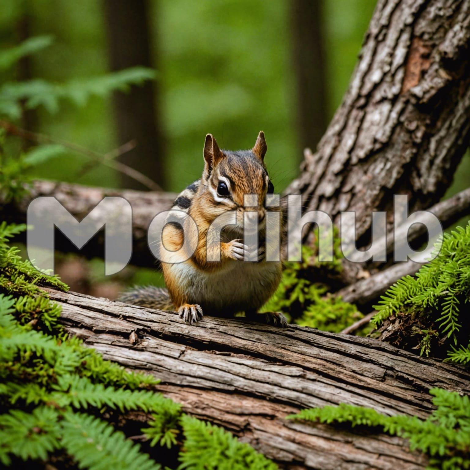 A chipmunk scampers along a fallen tree in the heart of the woods. Its fur, a mosaic of brown stripes, blends seamlessly with the forest floor. With nimble movements, it navigates the tree’s uneven surface, pausing occasionally to sniff the air with twitching whiskers. The moss-covered trunk provides a natural path for the small creature, highlighting its quick, delicate steps and attentive demeanor. In this tranquil woodland setting, the chipmunk’s natural agility and alertness make it a fleeting but captivating sight amidst the quiet of the forest.