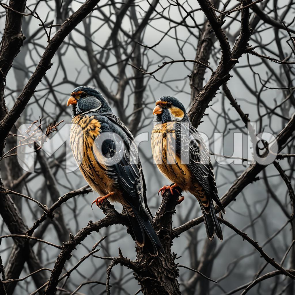 Birds perched on branches create a serene tableau, their colorful plumage contrasting against the verdant foliage. With watchful eyes and fluttering wings, they adorn the landscape with their presence, adding melody to the stillness of nature. Each chirp and trill is a testament to the beauty and harmony of the avian world.