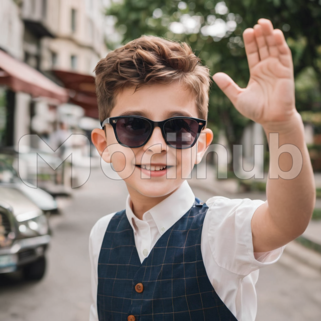 In the midst of bustling streets, a young boy exudes infectious joy. With a radiant smile, he wears sunglasses that reflect his carefree spirit. One hand raised in a friendly wave, he spreads positivity to all who pass. His enthusiasm is palpable, igniting a sense of warmth in the hearts of onlookers. In this urban tableau, his simple gesture of happiness becomes a beacon of light amidst the city’s hustle and bustle.