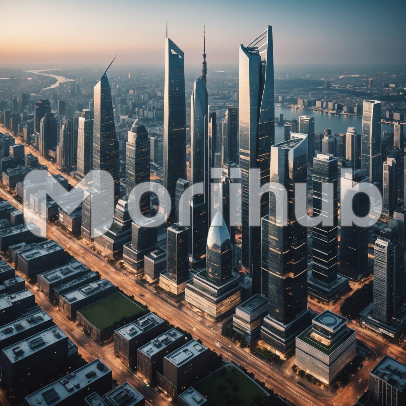 A stunning cityscape unfolds before the eye, dominated by towering skyscrapers that reach high into the sky. Each building has glass facades reflecting the vibrant hues of the surrounding environment. The skyline is a blend of modern architecture, with sleek lines and unique designs that create a dynamic silhouette against the horizon. The scene captures the essence of urban life, where innovation and energy converge in a vibrant metropolis, showcasing the beauty of city living.