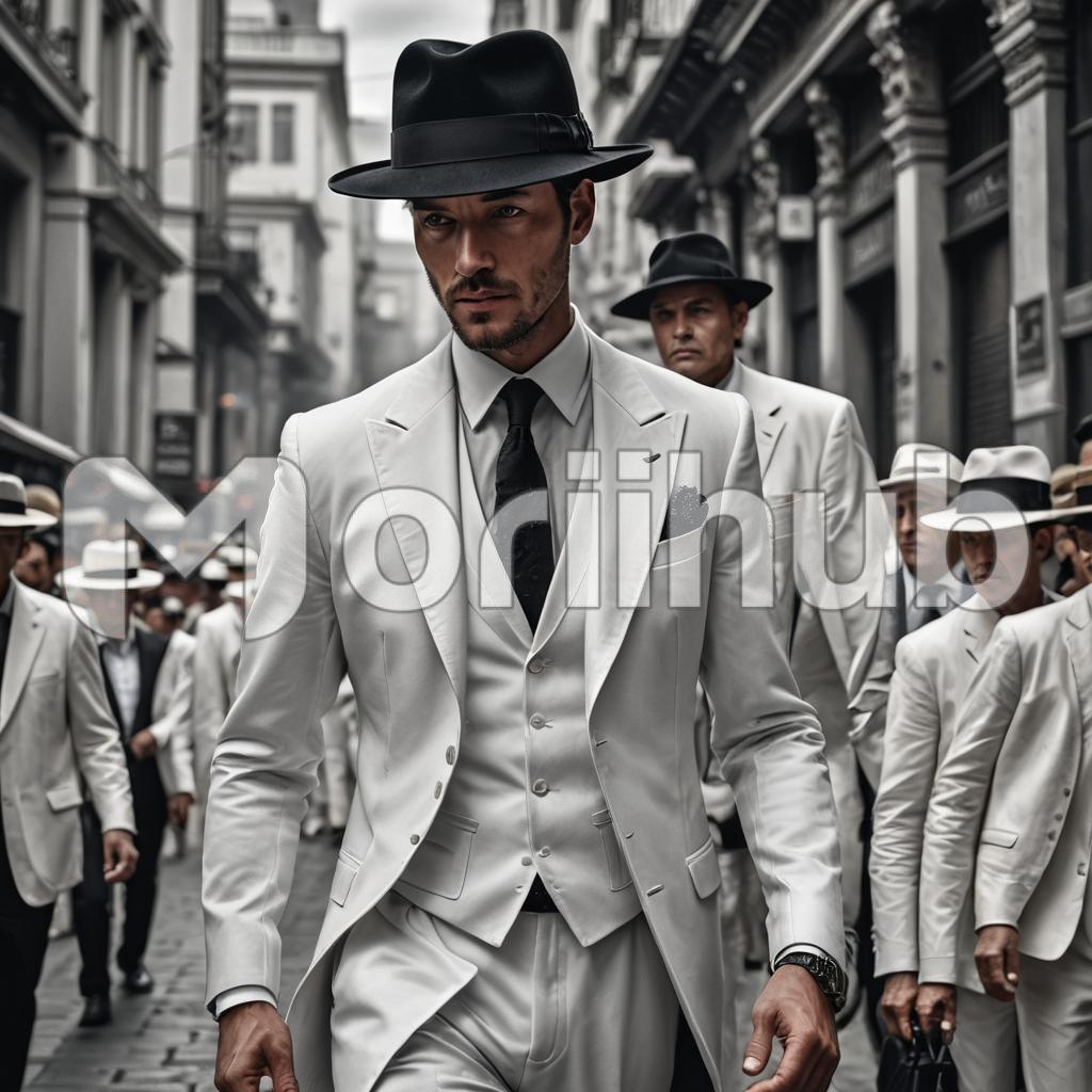 Dressed impeccably in a pristine white suit and complemented by a sleek black hat, he exuded an air of timeless elegance. The contrast between the two colors highlighted his sophisticated style, drawing admiration from all who crossed his path. Each element of his ensemble was carefully chosen, reflecting a deep understanding of classic fashion. The white suit, crisp and flawless, paired perfectly with the black hat, creating a striking silhouette that was both modern and reminiscent of bygone eras. His confident stride and impeccable taste made him a standout figure, effortlessly blending tradition with contemporary flair.