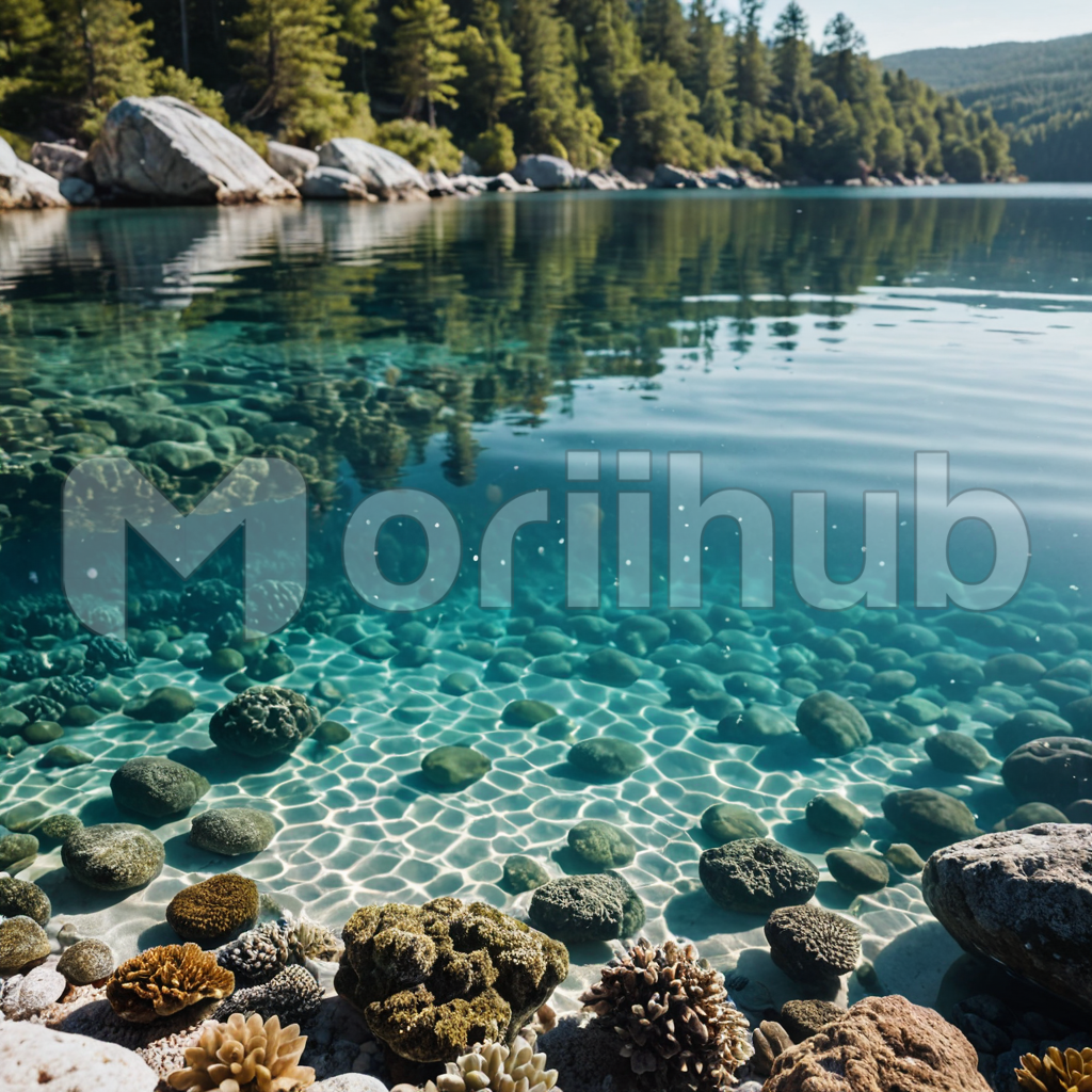 From the shore, the shallow ocean stretches outward, a tapestry of azure hues blending seamlessly with the sky. Amidst the tranquil waters, patches of vibrant greenery sway gently, framing the scene with a natural border of life. The lush vegetation along the coastline adds a touch of verdant beauty to the serene tableau, harmonizing with the rhythmic lull of the waves. It’s a tranquil vista that whispers of the interconnectedness of land and sea.