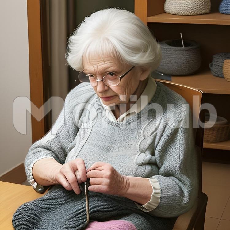 In a cozy corner of her quaint living room, a gentle granny sits serenely, surrounded by the warmth of nostalgia. Silvery strands of hair frame her face as she lovingly knits a vibrant sweater. The rhythmic click-clack of needles creates a soothing melody, echoing a lifetime of skill and cherished memories. The soft glow of a lamp casts a comforting aura, revealing a tapestry of stories interwoven within each careful stitch. With a twinkle in her eye, she crafts not just a garment but a tangible embrace, a testament to enduring love and the passage of time.