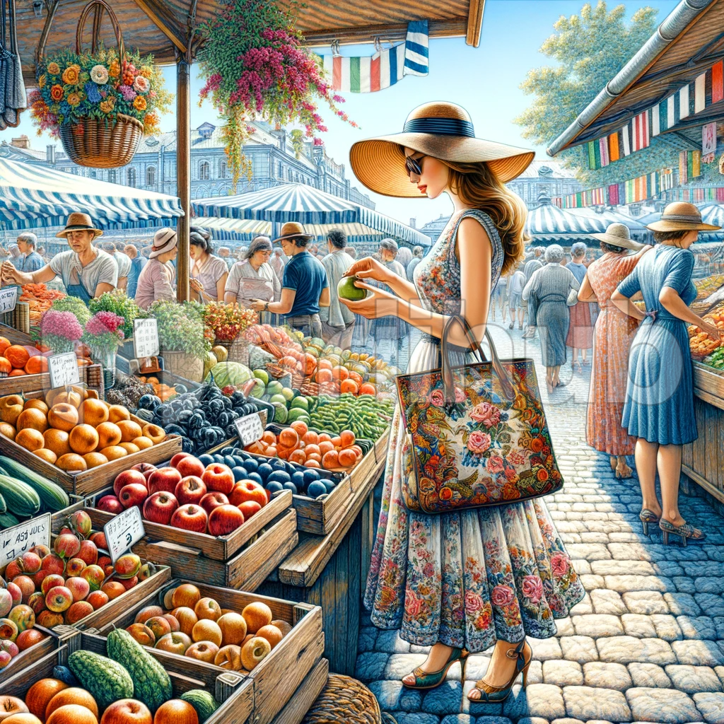 In this vivid and bustling scene, a lady exquisitely attired in a casual summer dress navigates through a traditional outdoor market. The market buzzes with vibrant colors and an array of stalls, each displaying an eclectic mix of fruits, textiles, and handmade crafts. The lady’s dress, a light and breezy ensemble, perfectly complements the warm, sunlit ambiance. As she engages with the local vendors, her smile radiates the joy of discovery and cultural immersion in this vibrant, sensory-rich shopping experience.