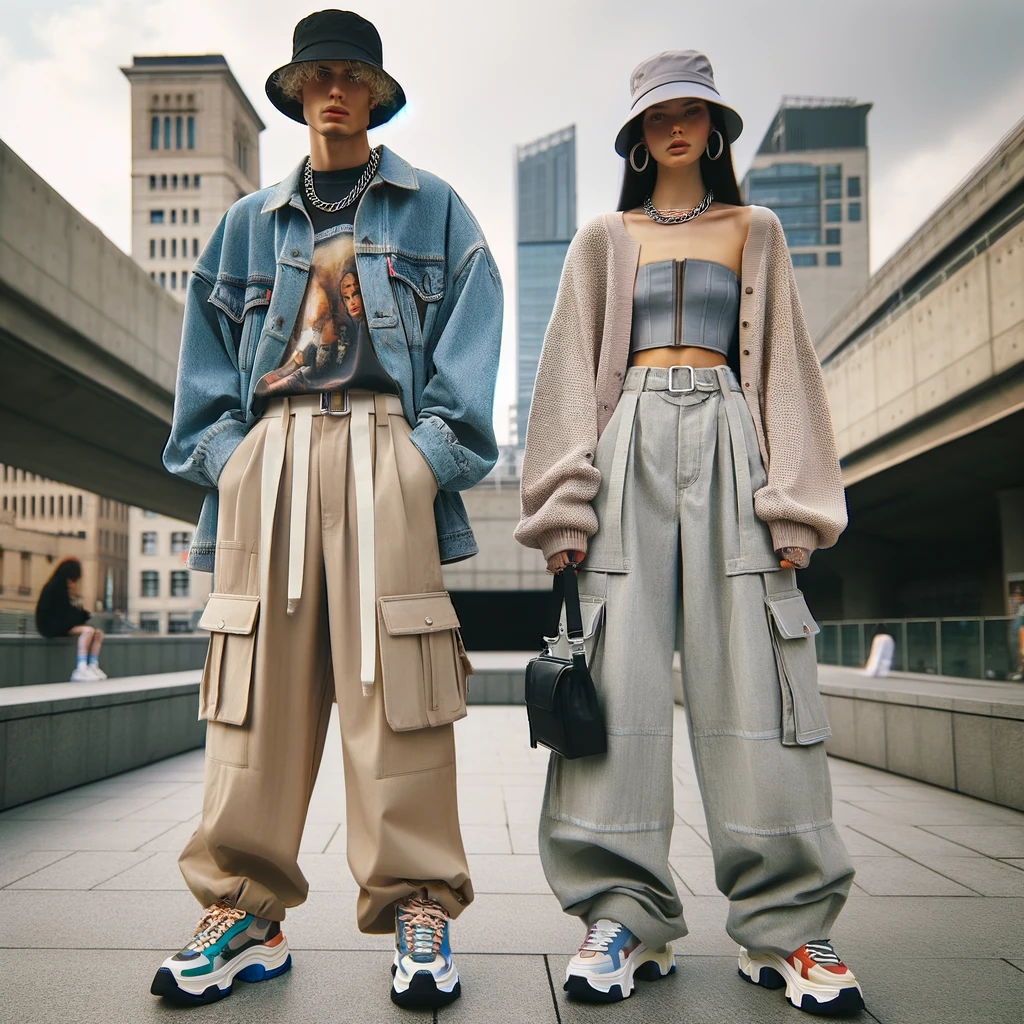 In the vibrant pulse of the urban landscape, the male model strides confidently, clad in an oversized denim jacket effortlessly layered over a statement graphic tee. His look exudes edgy sophistication, a fusion of street style and contemporary flair, echoing the dynamic rhythm of the city around him.