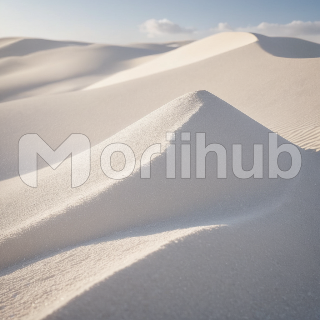 Endless stretches of pristine white sands extend as far as the eye can see, bathed in the gentle embrace of the sun’s warm rays. Above, the vast cerulean sky is adorned with only a few wisps of delicate clouds, casting fleeting shadows on the tranquil landscape. This idyllic scene captures the pure serenity of a desert oasis, where the sands meet the heavens in a harmonious dance of earth and sky.