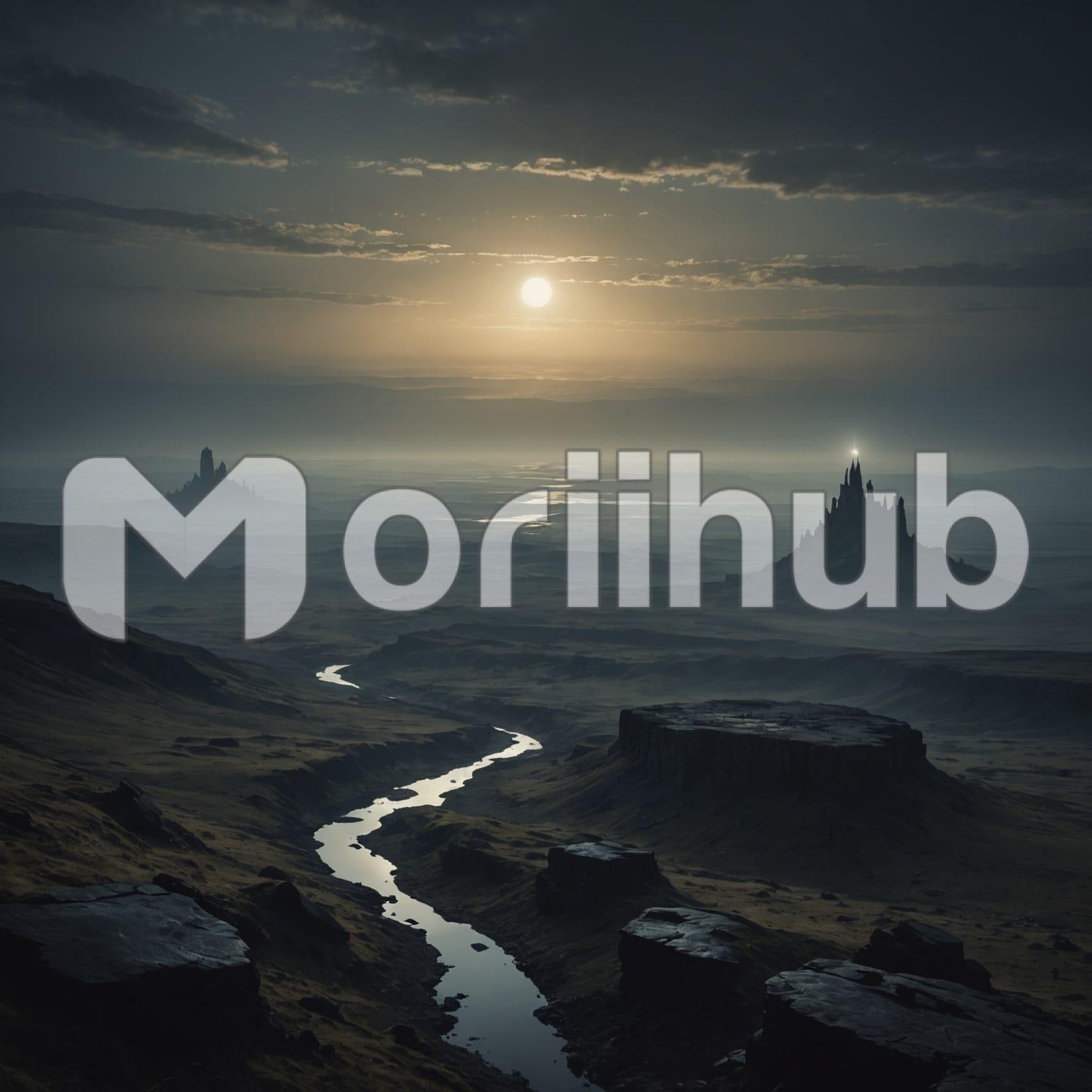 A meandering stream cuts through the arid, rocky terrain, its waters a ribbon of cool serenity amidst the parched earth. The setting sun casts elongated shadows, painting the landscape in subtle gradients of light and dark. Along the stream’s edge, hardy shrubs and sparse grasses cling to life, their resilience evident in the harsh environment. The water, clear and reflective, mirrors the fading light and the occasional flight of a bird overhead. As evening descends, a tranquil hush settles over this rugged domain, where the stream flows as a lifeline amid the desert’s unforgiving embrace.