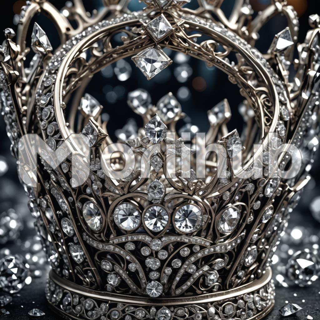 A diamond crown, a regal masterpiece, sits atop her head, each gem a testament to her sovereignty. Gleaming with the brilliance of a thousand stars, it adorns her with majestic splendor, symbolizing not just power but grace. With every facet, it reflects her strength, her dignity, her legacy of royalty.