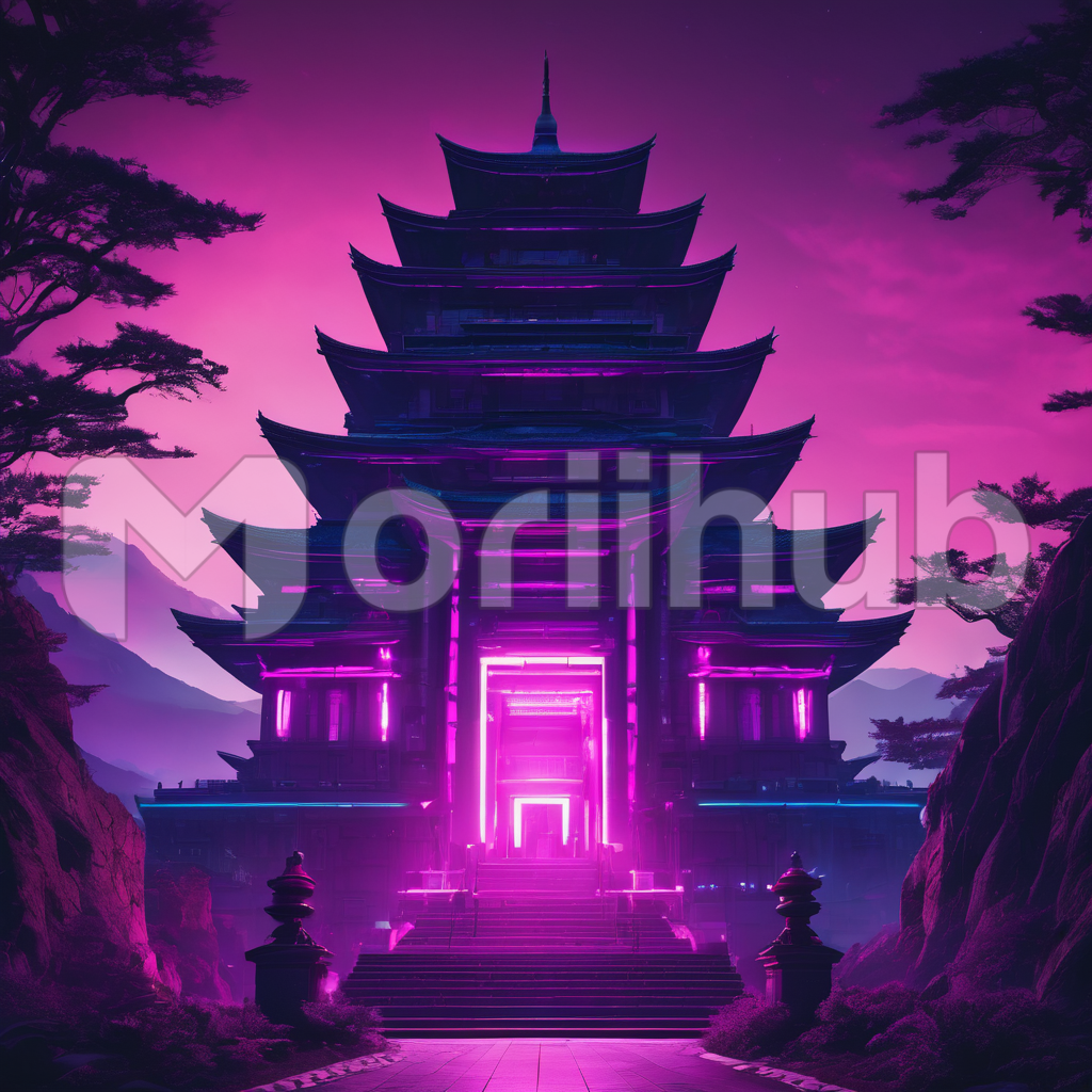Against a somber sky, a temple stands in silent contemplation, its ancient architecture a symbol of spiritual fortitude. The solemn atmosphere is accentuated by the stoic presence of surrounding trees, their branches reaching skyward like supplicants in prayer. Amidst the quietude, the temple’s aura of reverence pervades the landscape, offering solace