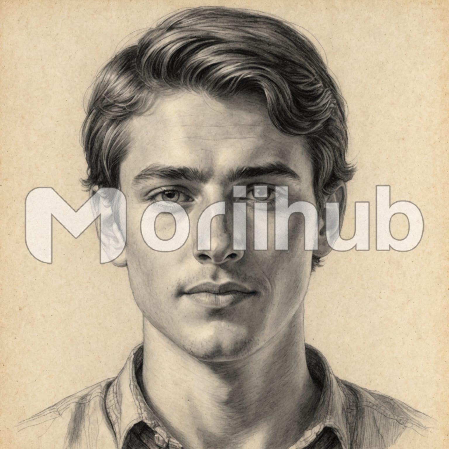 A sketch portrays a young man looking on, his gaze focused and thoughtful. The artist’s pencil strokes capture the contours of his face, with subtle shading adding depth to his expression. His eyes are drawn with a keen attention to detail, reflecting a sense of contemplation. The outline of his hair is loosely sketched, giving it a natural flow that frames his features. The simplicity of the lines and the light touch on the paper lend an air of authenticity, making the portrait feel both intimate and expressive, inviting the viewer to ponder his thoughts.