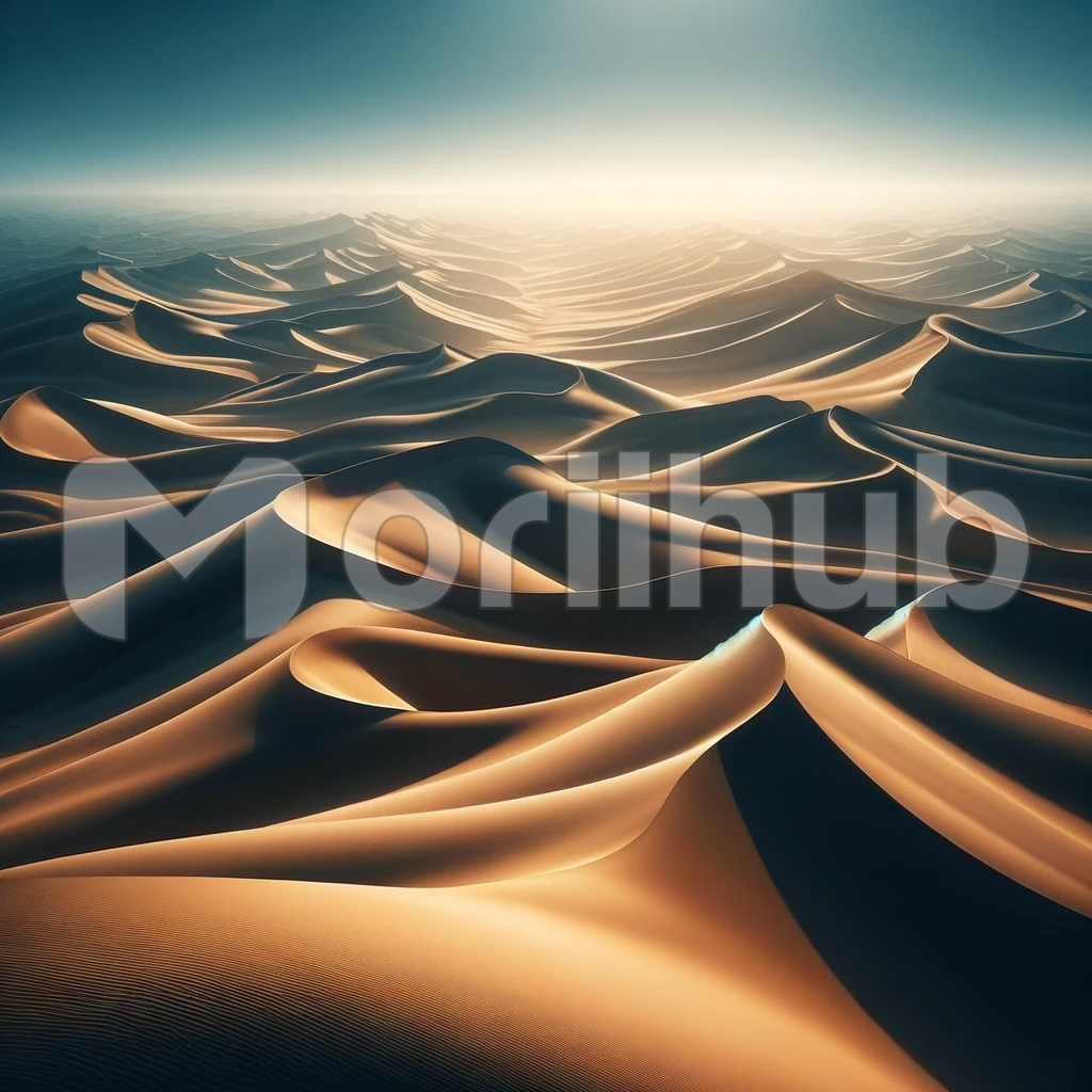 Picture a captivating desert landscape, a seemingly endless expanse of rolling sand dunes stretching beneath a flawless, azure sky. The dunes rise and fall gracefully, their contours etched by the whims of the wind. Each dune boasts smooth, undulating lines that cascade like frozen waves, casting mesmerizing shadows in the golden sunlight. This pristine desert panorama embodies the sheer grandeur and timelessness of nature, where the Earth’s artistry is painted with the elegance of sweeping curves across the vast, sun-kissed canvas of the dunes.