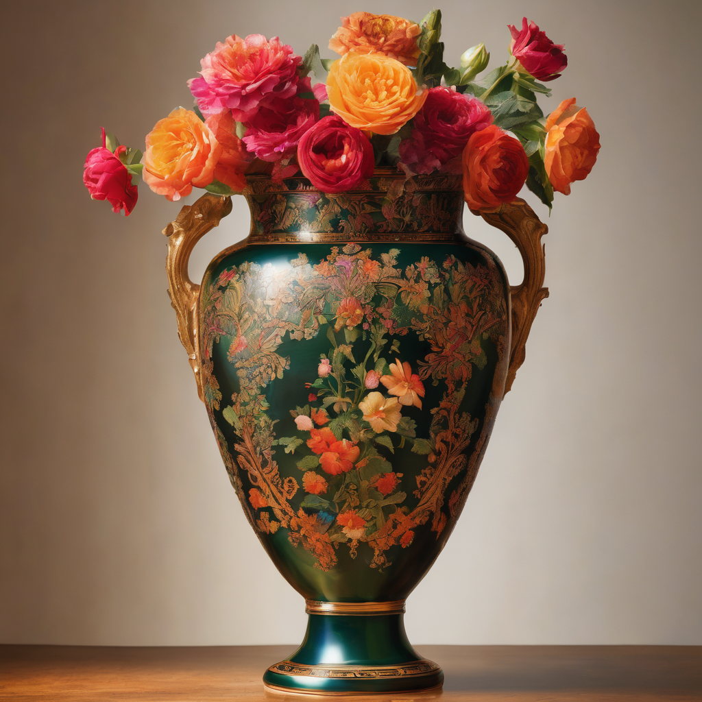 A beautiful flower vase graces the room with its elegant presence. Delicate blooms, a kaleidoscope of colors, cascade gracefully, adding a touch of nature’s poetry to the space. The vase, a work of art itself, complements the blossoms, creating a captivating symphony of beauty that captivates and uplifts the soul.