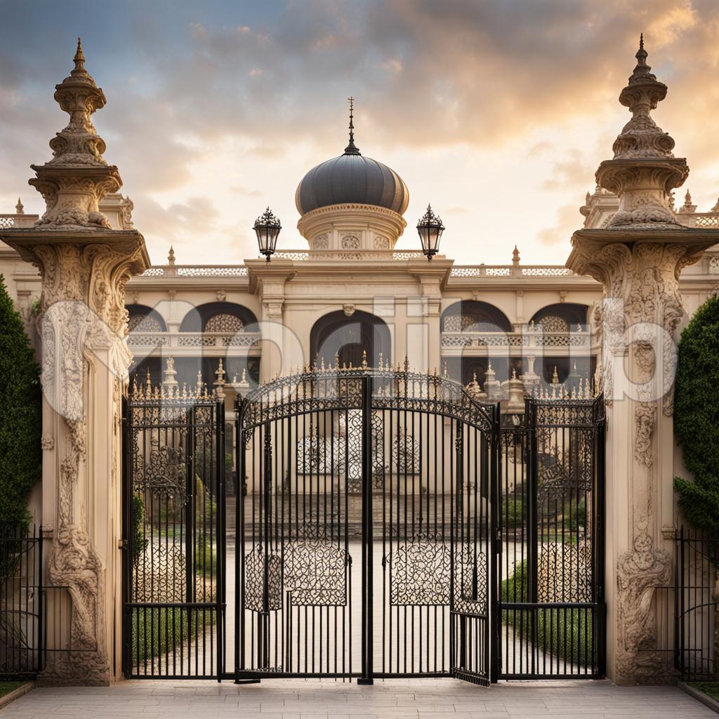 Beyond the regal front gate lies a grand building, an architectural marvel adorned with elegant spires and intricate detailing. Majestic and timeless, it stands against the sky, showcasing a blend of history and opulence. The gate, with its ornate design, provides a tantalizing preview of the grandeur within, inviting admiration for the craftsmanship and stately presence that define this awe-inspiring structure. The front gate view offers a captivating glimpse into a world of architectural splendor.