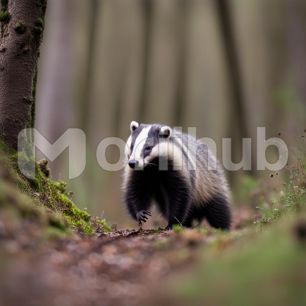 A close-up unveils the intricate details of a badger traversing woodland terrain. Its fur, a mosaic of earthy tones, shimmers with a coarse yet inviting texture. Each paw makes contact with the forest floor, echoing the rhythm of nature’s quiet dance. The badger’s keen eyes and alert demeanor reveal a wild spirit navigating the woodlands with purpose, offering a glimpse into the secretive and enchanting world it inhabits amidst the dappled light and shadows of the woods.
