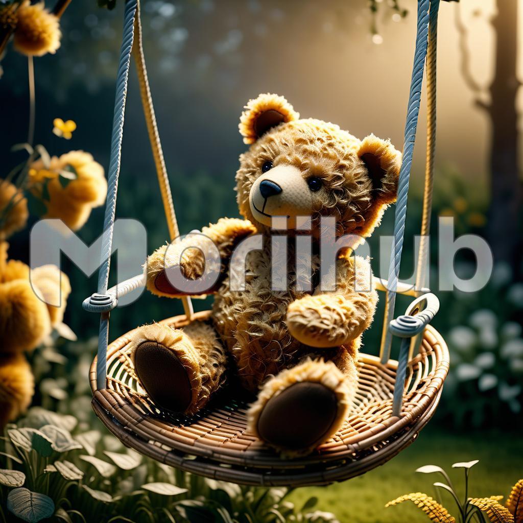 A teddy bear on a swing creates a heartwarming and playful scene, evoking feelings of nostalgia and innocence. The teddy, with its soft and cuddly appearance, gently sways back and forth, bringing a sense of whimsy and comfort. This charming setup often captures the essence of childhood joy, as the swing’s gentle motion mirrors the carefree moments of youth. The scene, whether set in a cozy corner of a nursery or a whimsical garden, symbolizes a return to simpler times and cherished memories. It’s a delightful reminder of the joy and magic that toys can bring to life.