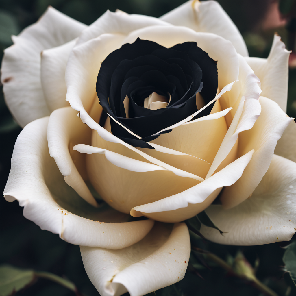 A captivating contrast unfolds in the intertwining petals of a white and black rose. The pristine white blooms exude purity, while the velvety black ones evoke mystery and elegance. As they entwine, each hue complements the other, creating a harmonious dance of opposites. This unique fusion symbolizes the duality of beauty, where light and darkness coexist in a delicate embrace. The white and black rose combination becomes a floral expression of complexity and allure.