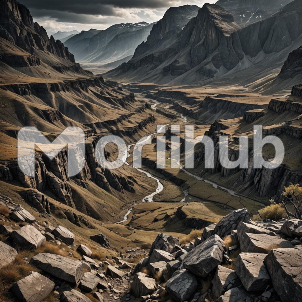 Wild terrain stretches across untamed wilderness, featuring rugged mountains, dense forests, and rocky cliffs. Rushing rivers carve through valleys, while vast open plains extend beyond the horizon.