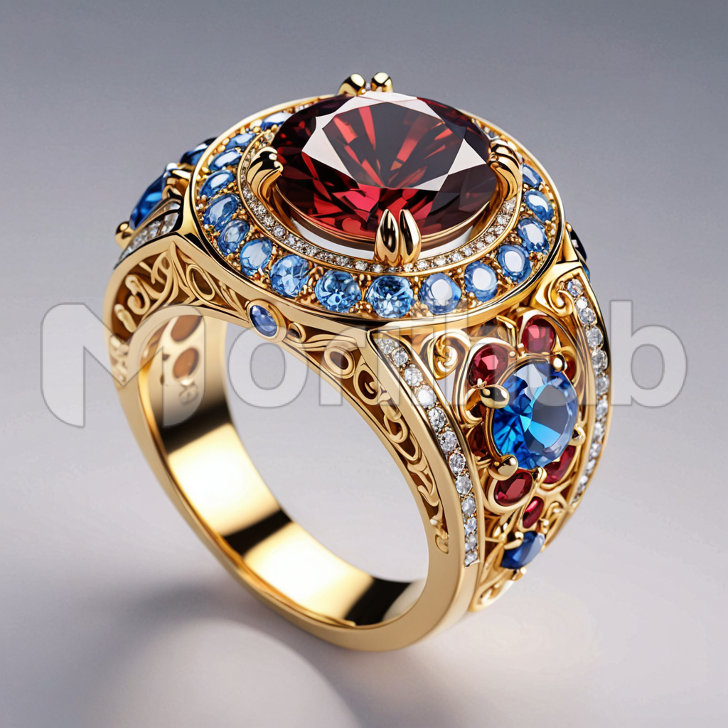 A golden ring, resplendent in its majesty, bears the weight of rare jewels with regal elegance. Each gem, carefully chosen and expertly set, adds a kaleidoscope of color to the ring’s opulent design. Diamonds sparkle like stars against the gold backdrop, while emeralds, rubies, and sapphires contribute their own unique brilliance. Together, they form a symphony of luxury, a testament to the craftsmanship and artistry of its creator. This ring, with its radiant beauty and timeless allure, becomes not just an accessory, but a cherished symbol of opulence and refinement.