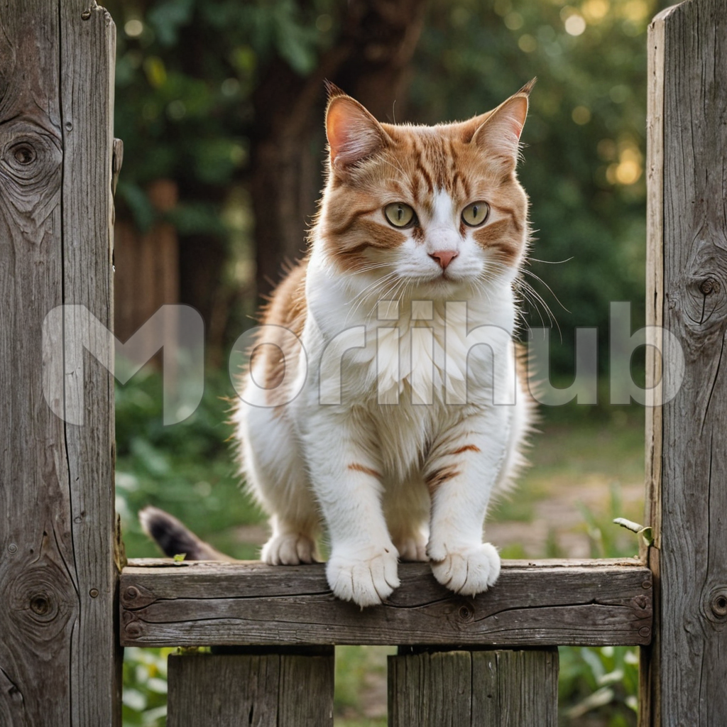 Perched gracefully atop a weathered wooden fence, a sleek cat surveys its domain with serene elegance. Its fur ripples softly in the breeze, and its amber eyes gleam with quiet curiosity as it gazes into the distance. Against the rustic backdrop, the cat exudes a sense of timeless poise, blending effortlessly with the natural surroundings. With a regal bearing, it embodies the essence of feline grace and dignity in its simple yet majestic perch.