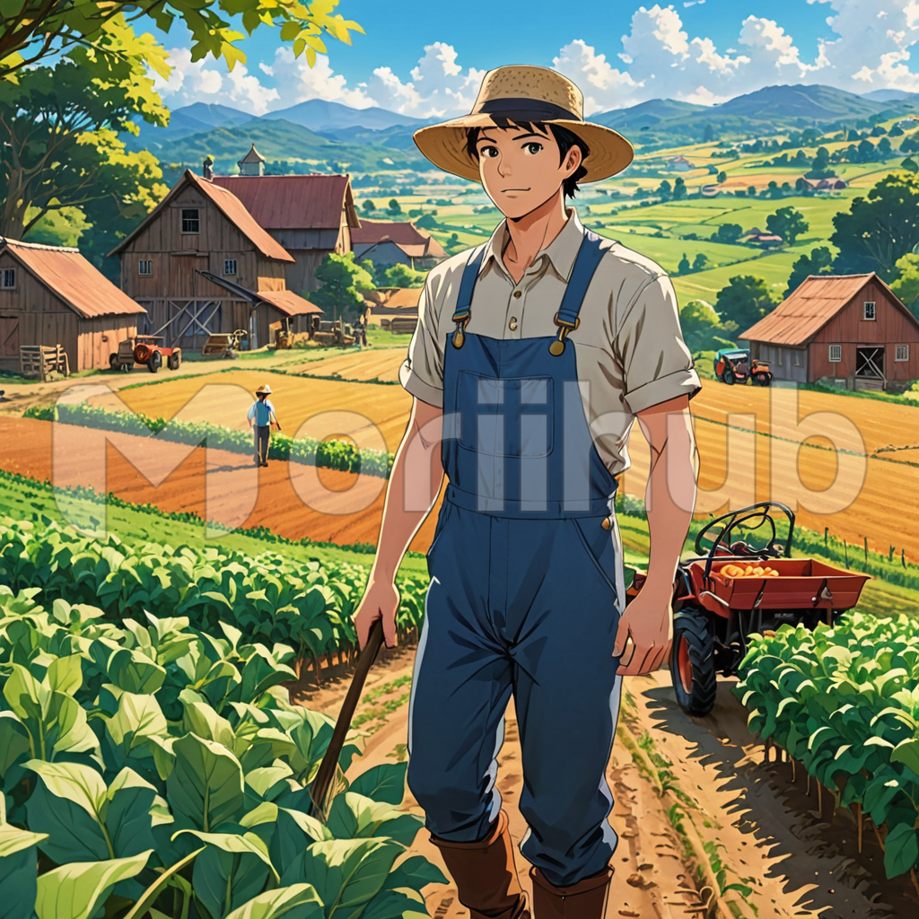 In the animated world of farming, a stoic farmer stands proudly amidst the fields. With a weathered expression, he surveys his land, surrounded by rows of crops swaying gently in the breeze. His trusty hat shields him from the sun’s rays as he tends to his duties. Behind him, the rustic barn and farmhouse complete the idyllic scene, evoking a sense of harmony and abundance in the whimsical cartoon landscape.