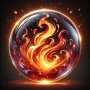 A crystal ball infused with the fire element. The crystal glows with intense fiery colors like deep reds, oranges, and golden yellows. Flames swirl inside the crystal ball, constantly shifting and dancing as though it contains an ever-burning fire. The crystal has a smooth, translucent surface that reflects the fiery light. A heated aura surrounds the ball, glowing with embers, symbolizing its connection to the fire element.