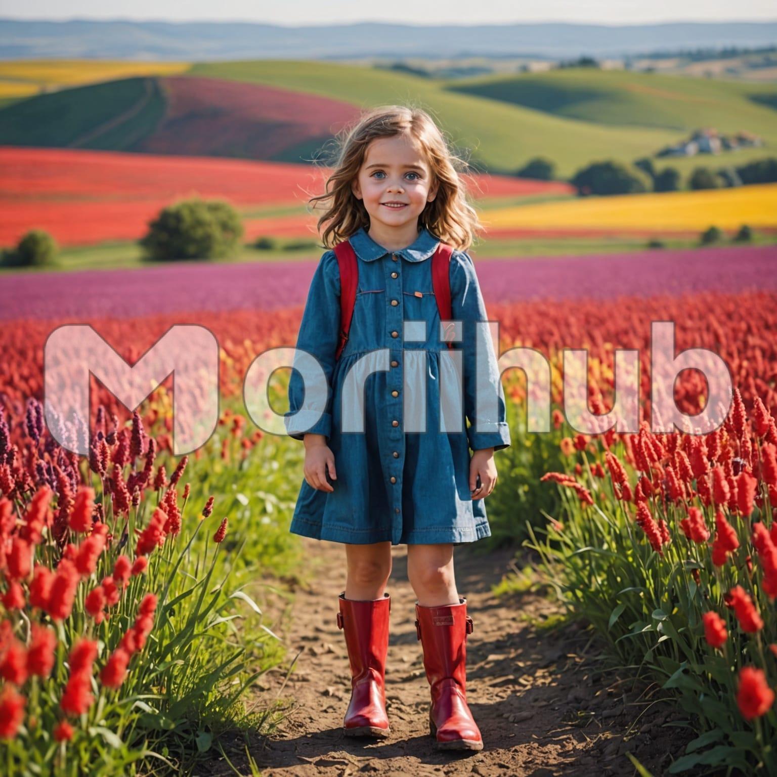 In a flower field, a cute little girl with a single red boot wandered amidst a riot of colors. Her laughter tinkled like wind chimes as she skipped from one patch of blooms to the next. With each step, the earth beneath yielded gently to her tiny feet, enhancing the charm of the vibrant flowers swaying gently in the breeze. The meadow felt like a magical haven of innocence and joy, where her presence added a touch of wonder to the serene and colorful scene.
