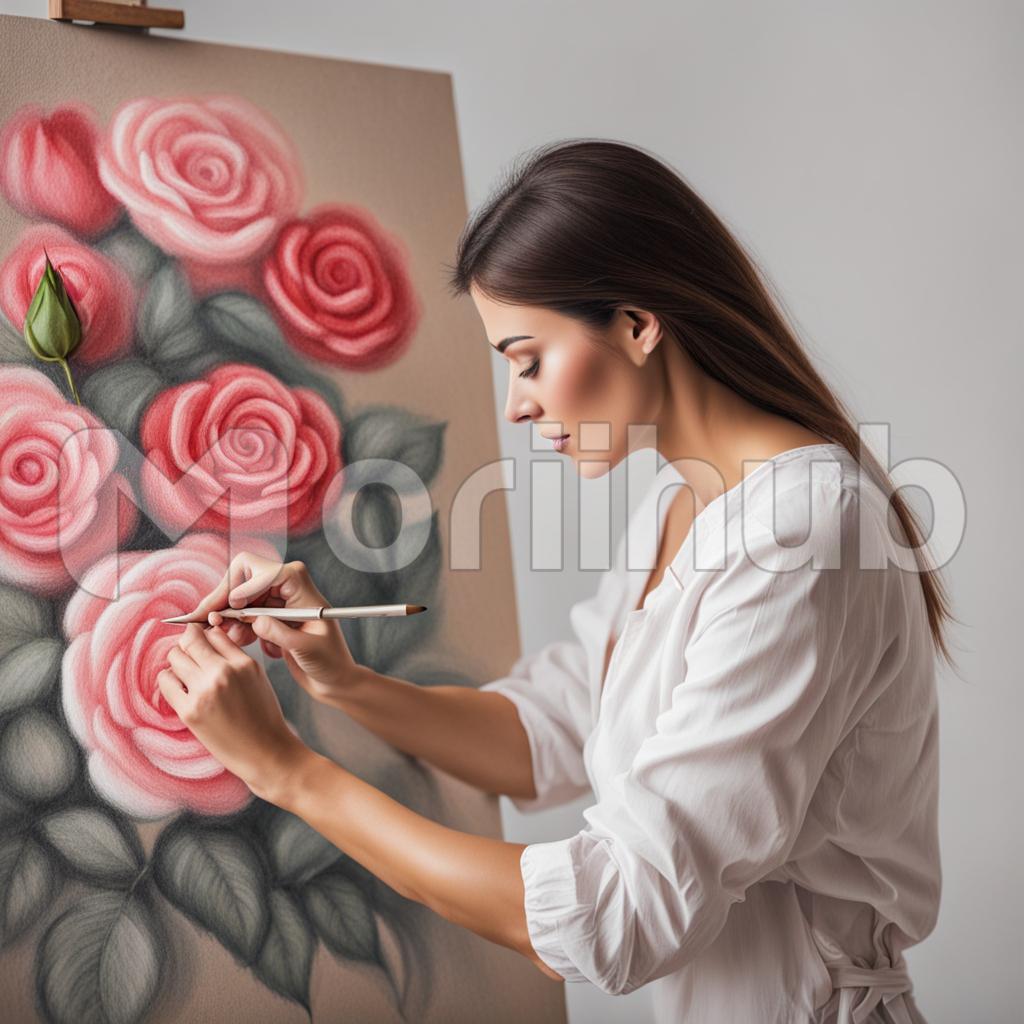 With delicate strokes, a woman breathes life onto canvas, sketching vibrant rose flowers. Her hands, guided by passion, craft each petal and thorn with meticulous grace. The canvas becomes a kaleidoscope of colors as she blends hues to capture the essence of blooming roses. Amidst the strokes, an artful dance unfolds, revealing the artist’s intimate connection with nature’s beauty. The finished creation resonates with the timeless elegance of roses, a testament to the transformative power of artistic expression.
