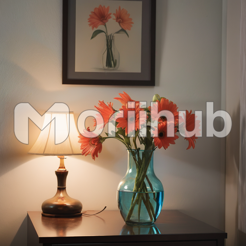 On the bedside table, a delicate flower vase graces the room with its presence. Holding a bouquet of vibrant blooms, it adds a touch of elegance and warmth to the intimate space. The soft glow of the lamp highlights its curves, casting a gentle shadow on the petals. Each morning, as the sun filters through the curtains, it illuminates the vase, infusing the room with the fragrance of fresh flowers and the promise of a new day. A symbol of beauty and renewal, the vase serves as a reminder to pause, appreciate the simple joys, and find solace in the fleeting moments of tranquility.