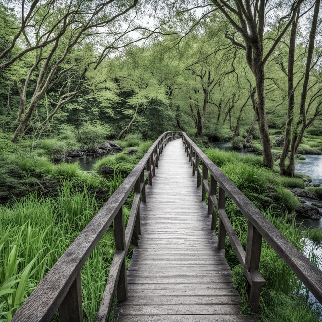 A verdant walkway meanders through a lush oasis, a symphony of greenery and tranquility. Canopies of foliage form a leafy embrace overhead, dappling sunlight onto the path below. The air is perfumed with the scent of blooming flowers, and the soft rustle of leaves accompanies each step, creating a serene journey through nature’s lush embrace.