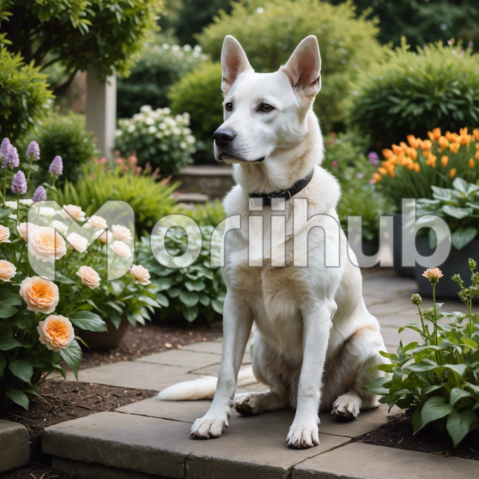 Amidst the blossoming garden, a dog sits contentedly, its furry form a picture of peaceful companionship. Surrounding it, a tapestry of vibrant flowers paints the scene with assorted hues. The dog’s gentle gaze wanders among the blooms, a silent observer of nature’s beauty. With each wag of its tail, it exudes joy and contentment, perfectly at ease in this tranquil sanctuary. Amidst the fragrance of blossoms and the symphony of birdsong, the dog finds solace and companionship in the heart of the garden.