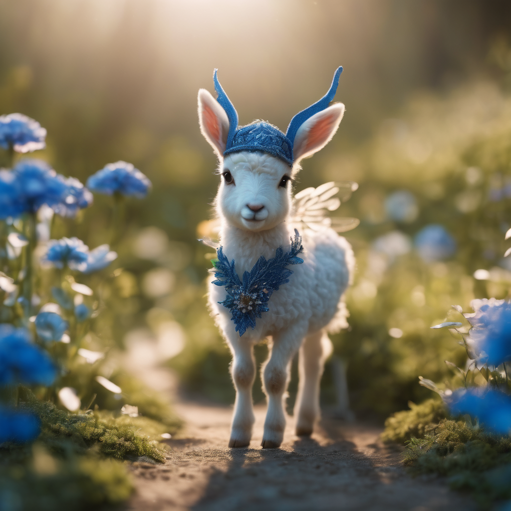 Amidst the vibrant blooms of a garden, a playful lamb frolics, adorned with a charming knitted hat atop its head. Its woolly coat blends seamlessly with the verdant surroundings as it gambols with innocent delight. The hat, a cozy accessory, adds a touch of whimsy to the scene, contrasting beautifully with the natural beauty of the garden. In this picturesque setting, the lamb embodies the essence of joy and innocence amidst nature’s splendor.