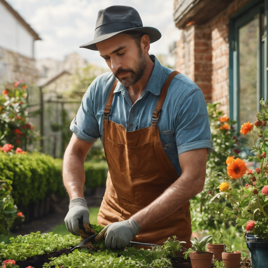 In the vibrant tapestry of a garden, a dedicated male gardener tends to his duties with passion and expertise. Clad in weathered yet purposeful attire, he kneels and prunes with care. The soil-stained hands and a wide-brimmed hat tell a tale of commitment, turning the garden into a canvas of flourishing beauty under his nurturing touch.