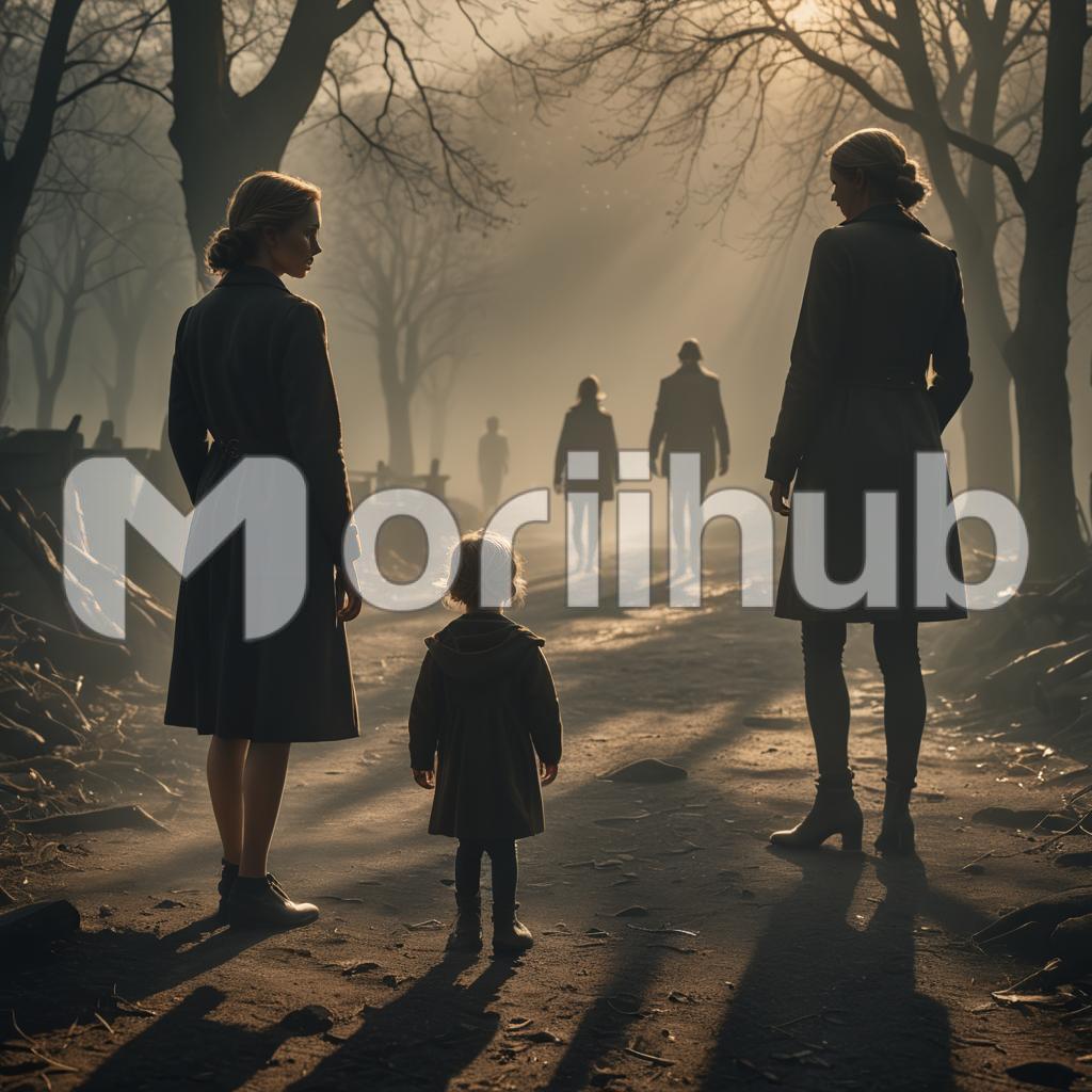 A tender moment is captured as the females in a family take a leisurely stroll together, their backs turned to the camera. The scene exudes a sense of togetherness and generational connection, as the women, ranging from young to old, walk side by side. Each one’s silhouette tells a story—whether it’s the confident stride of the mother, the gentle pace of the grandmother, or the playful skips of the young girl holding her hand. Their outfits, while varied, blend harmoniously, symbolizing unity despite the differences in age. The path they walk is framed by trees, their leaves softly rustling in the breeze, adding a peaceful, almost timeless quality to the moment. This simple yet poignant image reflects the strength of family bonds, the passing of wisdom, and the shared experiences that connect them across generations.