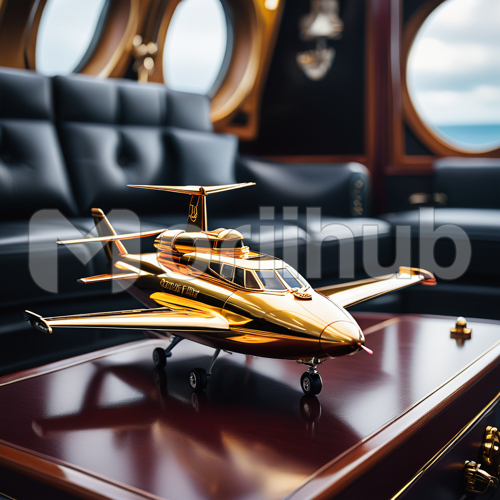 A miniature golden plane rests gracefully upon the tabletop, its sleek fuselage and delicate wings shimmering in the soft light. Each intricate detail, from the finely etched windows to the precise contours of the tail, exudes a sense of elegance and sophistication. Poised for flight, it captures the imagination, evoking dreams of adventure and exploration. In its miniature form, the golden plane symbolizes the boundless possibilities of travel and the allure of distant horizons.