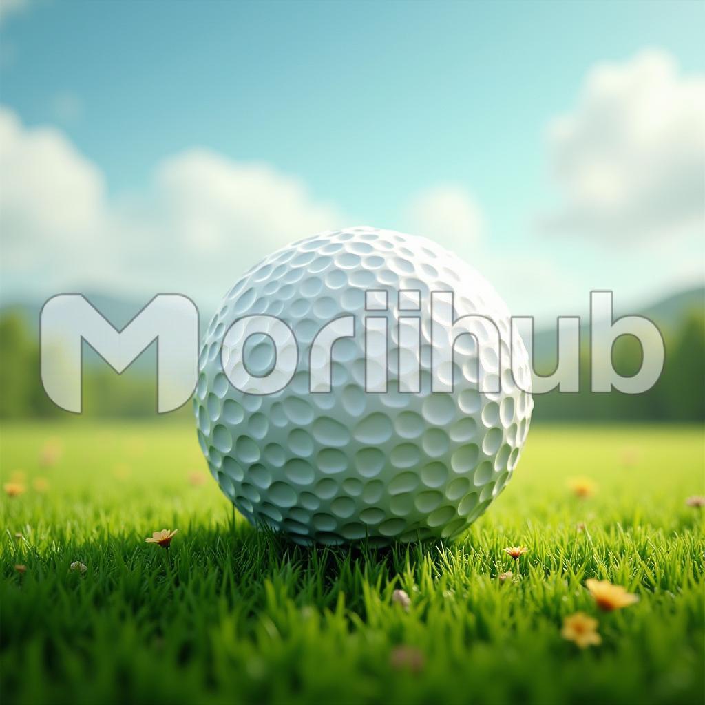 A pristine white golf ball rests on a patch of freshly cut grass, its smooth surface contrasting beautifully with the vibrant green blades surrounding it. Each blade is a testament to careful maintenance, creating a perfect backdrop for the glossy exterior of the ball. Above, wisps of clouds drift lazily across the sky, soft and white against a backdrop of deep blue. The serene atmosphere invites a sense of calm, while the golf ball seems poised for action, ready to launch into the clear, open air of a beautiful day.
