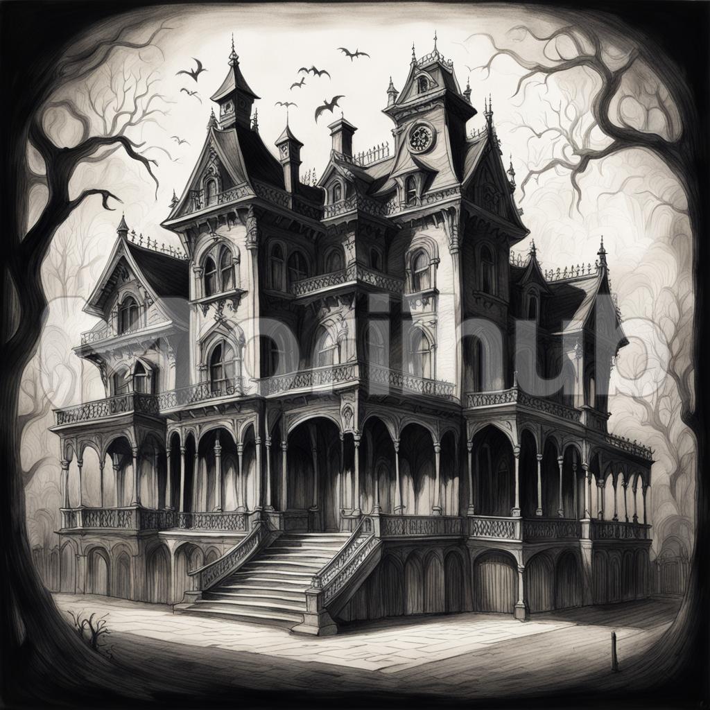 In the pencil’s delicate strokes, a house emerges, its quaint charm juxtaposed against the eerie presence of withered trees in the corner. Bats dance in the sky, their flight captured in swift lines, adding a touch of mystique to the scene. The sketch encapsulates a haunting beauty, where the tranquility of the house meets the uncanny allure of nocturnal creatures and the melancholy of aging trees, inviting contemplation of nature’s cycles.