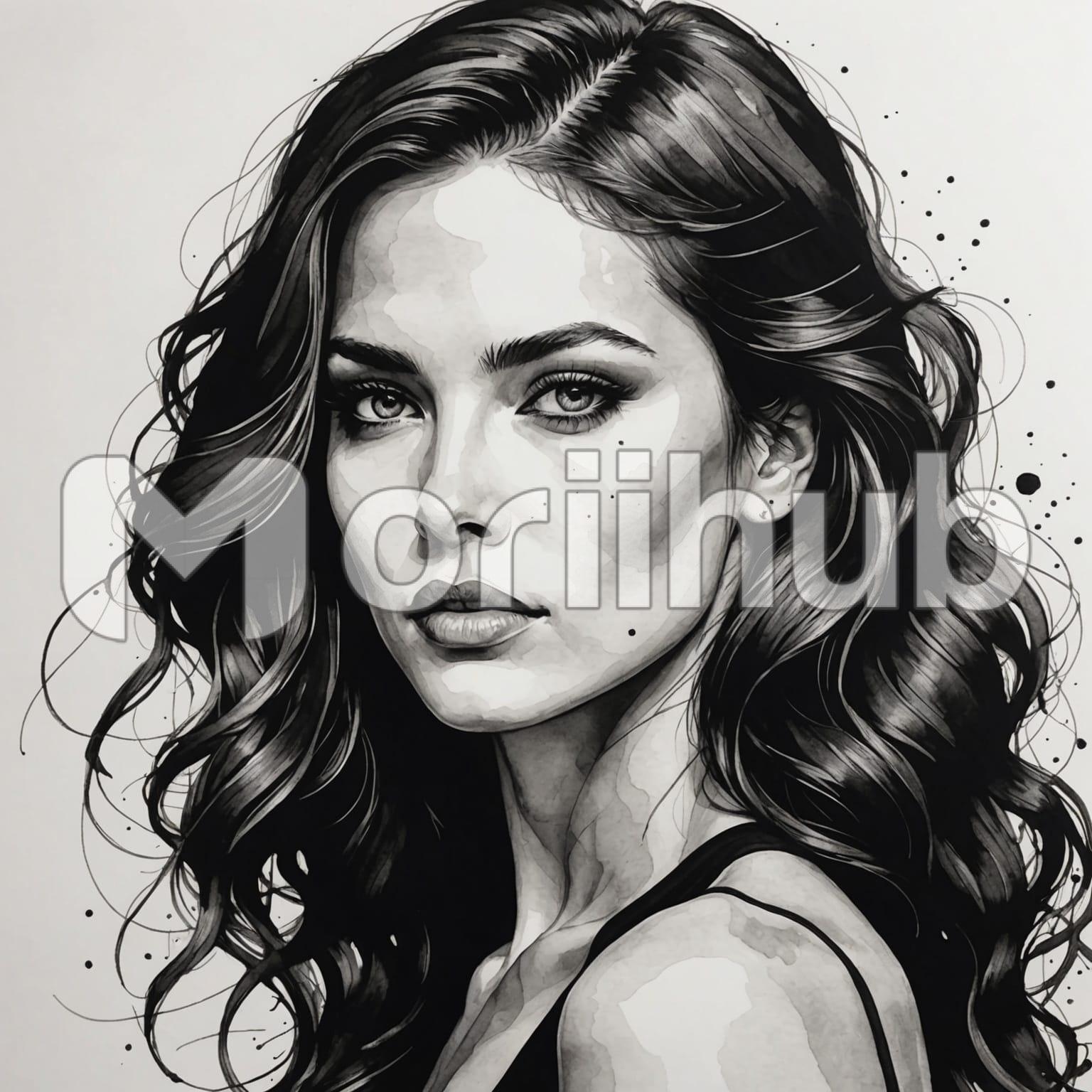 The sketch captures a stunning woman with delicate precision and grace. Her features are outlined with an elegant simplicity, showcasing her beauty through subtle, fluid lines. Her eyes are expressive, conveying a sense of depth and allure. The contours of her face and the gentle curve of her hair are rendered with a soft, refined touch, highlighting her poise. The sketch emphasizes her natural elegance, with minimal shading that enhances her features without overshadowing her inherent grace. The overall effect is one of timeless, captivating beauty.