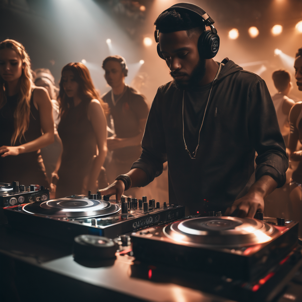 In the heart of the pulsating party, a DJ becomes the maestro of rhythm, seamlessly blending beats that electrify the air. Surrounded by vibrant lights, partygoers move in harmony with the pulsating music, their silhouettes dancing in unison. The DJ’s hands work the decks like a virtuoso, orchestrating a sonic tapestry that transforms the space into a lively haven. The dance floor comes alive, and the party becomes a symphony of movement, sound, and infectious energy.