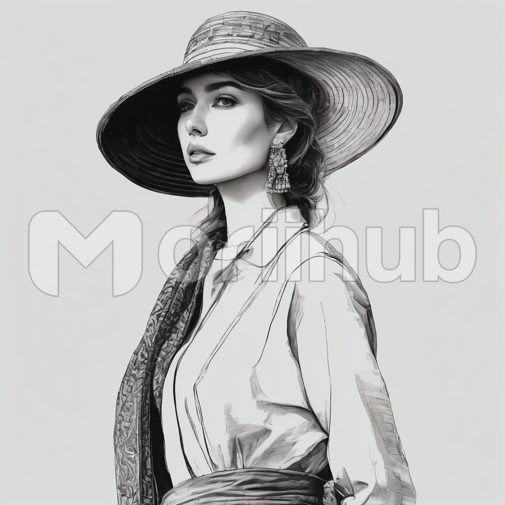 A pencil sketch brings to life the elegance of a beautiful woman with a hat adorning her head. The artist’s strokes intricately define her features, capturing the essence of her allure. The hat, a stylish accessory, adds a dash of sophistication, casting a subtle shadow that enhances the portrait’s depth. This minimalist yet detailed sketch encapsulates the timeless beauty and grace of the subject, inviting viewers into a realm of artistic charm.