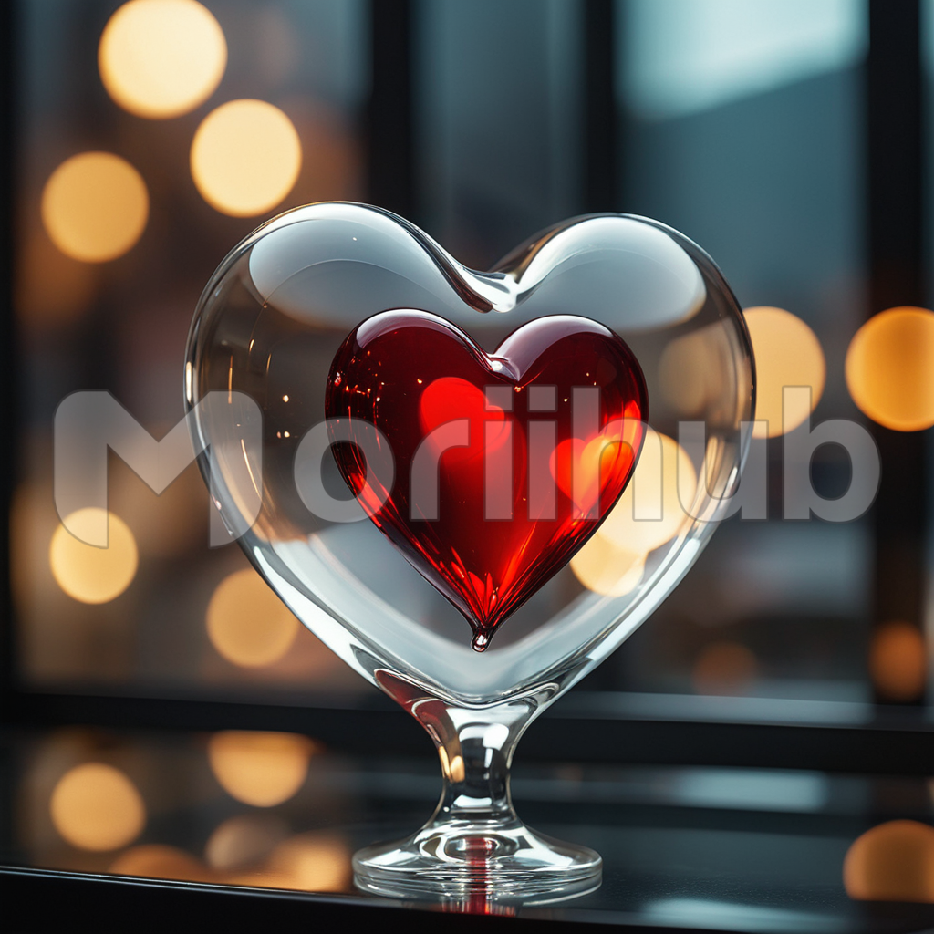Upon the table’s surface, an ornate glass heart rests delicately, its intricate contours catching the soft light. Crafted with precision, the heart’s intricate design captivates the eye, each delicate curve a testament to artistry. Light dances through the transparent glass, casting enchanting shadows upon the table. A symbol of love and elegance, the glass heart exudes an aura of romance, inviting admiration and evoking a sense of tender beauty.