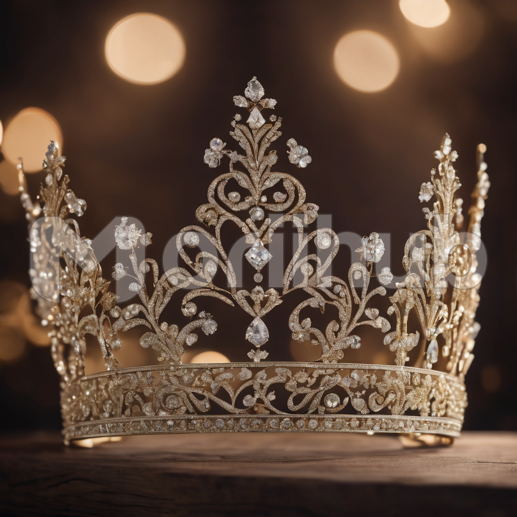 A resplendent tiara, adorned with diamonds, graces its stand as a radiant testament to opulence. The diamonds, meticulously embedded, shimmer with celestial brilliance, creating a dazzling crown fit for royalty. The stand cradles this regal masterpiece, elevating it to a position of honor. Each facet of the tiara captures and reflects light, casting a luminous aura. This exquisite display, frozen in time, epitomizes the marriage of craftsmanship and luxury in a timeless symbol of grandeur.