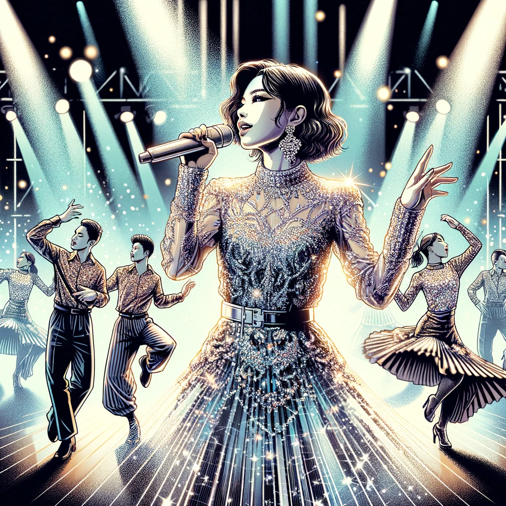 On stage, a whirlwind of energy and charisma, a female singer commands the spotlight. Her voice, a mesmerizing blend of power and emotion, electrifies the air, captivating the audience’s hearts. Surrounded by a troupe of dynamic dancers, she moves with effortless grace, infusing each step with passion and precision. With every note she hits, she weaves a spellbinding performance that leaves the crowd spellbound, craving for more.
