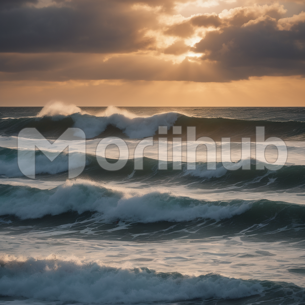 The sea stretches endlessly, its azure waves crashing against the shoreline with a rhythmic embrace. As the day draws to a close, the horizon hosts a stunning sunset, its vibrant colors muted by wisps of cloud. The sky paints a tapestry of warm hues, casting a serene glow upon the water’s surface. In this tranquil moment, the meeting of sea and sky creates a mesmerizing display of nature’s grandeur, where waves whisper secrets to the setting sun.