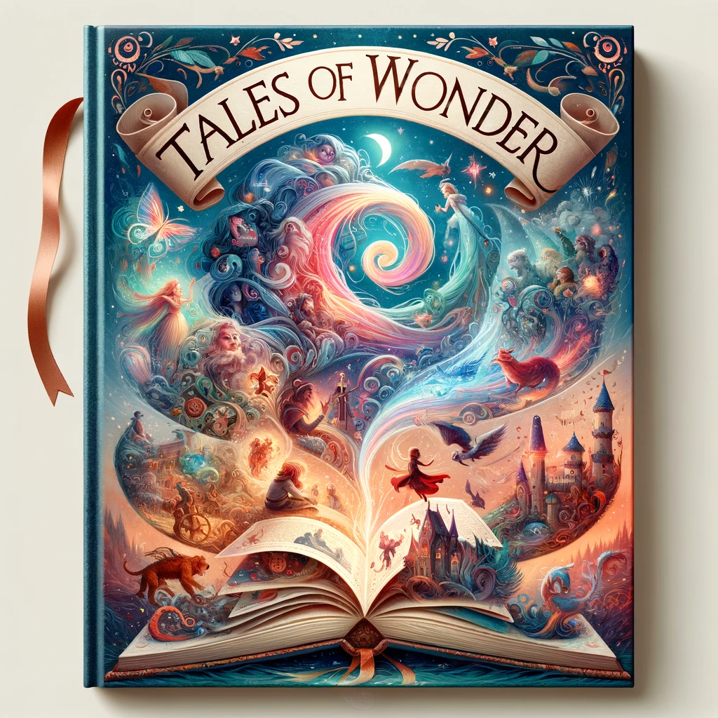 The cover depicts a mystical forest glade, where ancient trees stretch towards a starry sky. Amidst swirling mist, a wise old owl perches on a branch, its eyes aglow with secrets untold. Nearby, a worn leather-bound book rests, beckoning with promise. Moonlight casts a gentle glow, inviting readers into a world where every page holds the enchantment of storytelling magic.