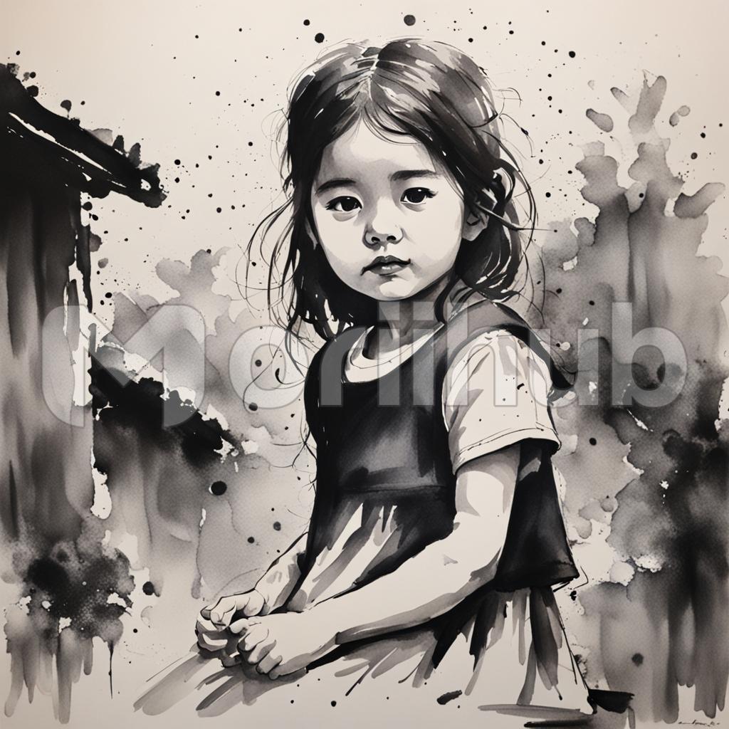 In delicate strokes of ink, a little girl emerges on the canvas, her presence ethereal yet captivating. The subtle interplay of light and shadow brings depth to her features, capturing the innocence and wonder of youth. With each brushstroke, her essence is immortalized, her spirit seemingly poised to leap off the paper. In this evocative ink painting, the essence of childhood is immortalized, inviting viewers to glimpse the magic of youth frozen in time.
