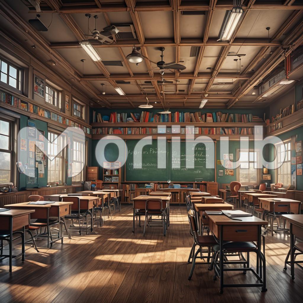 In a vibrant classroom designed to foster creativity and learning, colorful posters adorn the walls, showcasing inspirational quotes, educational charts, and student artwork. Brightly painted desks and chairs are arranged in dynamic groupings to encourage collaboration. Sunlight streams through large windows, illuminating a cozy reading nook filled with bean bags and bookshelves brimming with diverse titles. Interactive whiteboards and smart technology stations invite students to engage with lessons actively.