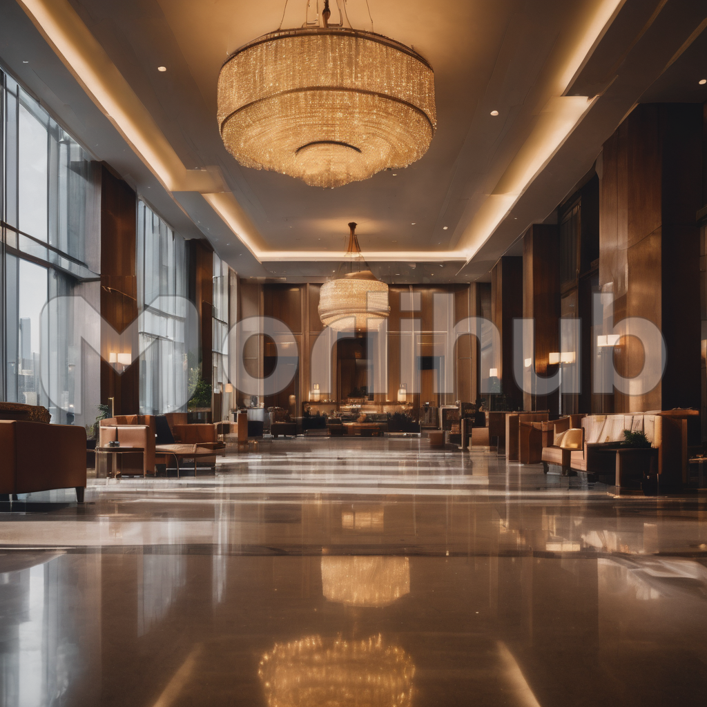 The hotel lobby’s lounge area exudes elegance and comfort. Plush armchairs and sofas are arranged around low coffee tables, inviting weary travelers to unwind. Soft, warm lighting casts a cozy glow, creating an inviting ambiance. The decor features a blend of modern and classic elements, with tasteful artwork adorning the walls. Guests chat softly or sip on their drinks, enveloped in an atmosphere of relaxation, making it the perfect spot to start or end the day.