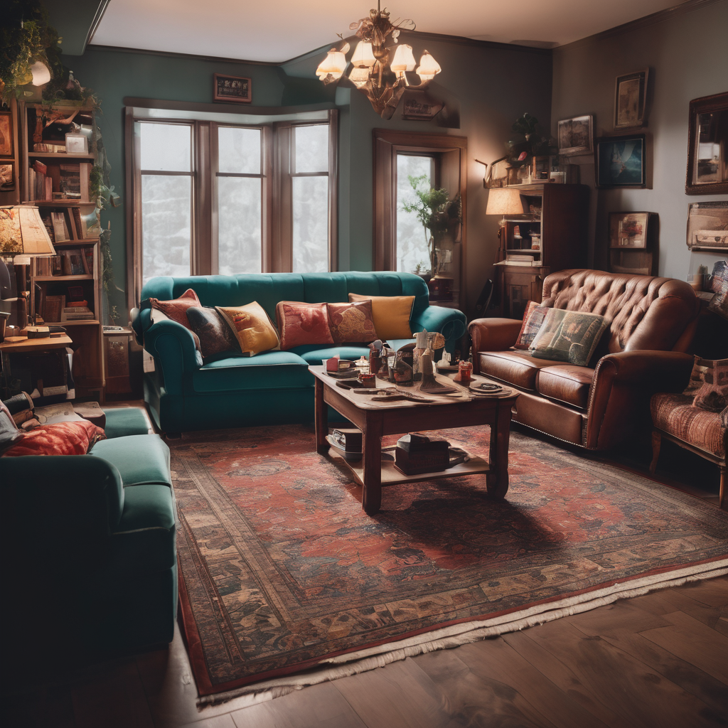 Amidst the welcoming embrace of a living room, plush couches beckon relaxation. A coffee table, adorned with ornaments, rests atop a soft rug, anchoring the space. Lamps stand sentinel in the corner, casting a warm glow that illuminates the room with gentle light. In this cozy haven, the blend of comfort and elegance invites moments of quiet contemplation or lively conversation among cherished company.